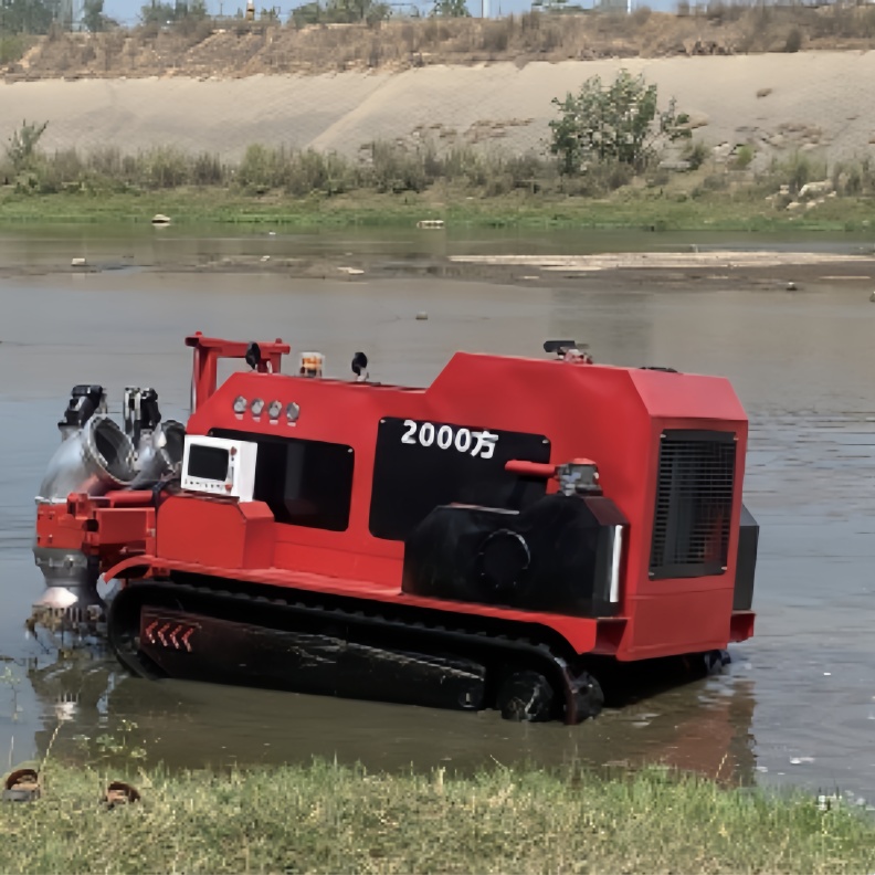 Crawler pump UGV delivers 2000 m³/h drainage with Weichai 150kW diesel power, 500m remote control, IP65 protection, and 300mm obstacle clearance. Built for levee breaches, mine dewatering, and industrial flood control.