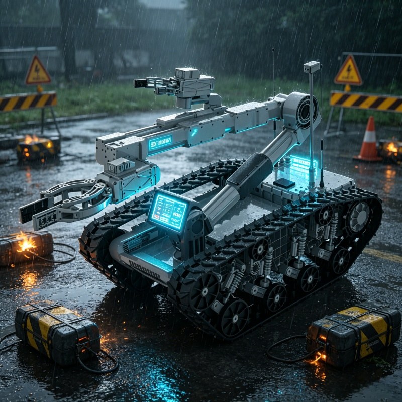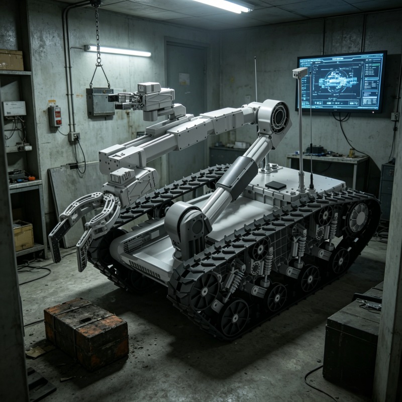 Heavy-duty multi-purpose EOD robot – 400kg, 120kg max grab weight, 9-DOF dual gripper arm, 3.5m vertical reach, Christie suspension, IP66 protection, 6h runtime, -40°C to +50°C operation. For extreme environment bomb disposal and hazardous material handling.