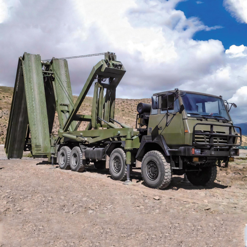 Мост HZ25 Mountainous Plateau Accompany Bridge – это специализированный механизированная мостовая система Разработан для горных и платообразных районов. Он предназначен для быстрого развертывания 25-метровый мост для обеспечения возможности техники и транспортных средств преодолевать естественные и искусственные преграды, включая реки, траншеи и кратеры. Ключевым преимуществом является гибкость развертывания: мост можно устанавливать как с спереди или сзади сопровождающего транспортного средства, приспосабливаясь к пересеченной или неровной местности, распространенной на плато и в горных районах.