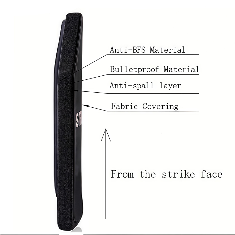 ◦ Материал Anti-BFS: уменьшает деформацию задней поверхности на 35% по сравнению с неусиленными пластинами, сводя к минимуму риск тупой травмы, что критически важно при сильных ударах на близком расстоянии (15 м).